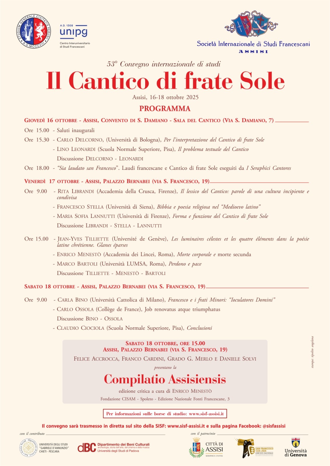 On the occasion of the 53rd Conference Il Cantico di frate Sole, organized by the International Society of Franciscan Studies in the historic setting of the city of Assisi (October 16–18), Sofia Lannutti will give a talk entitled Forma e funzione del Cantico di frate Sole.